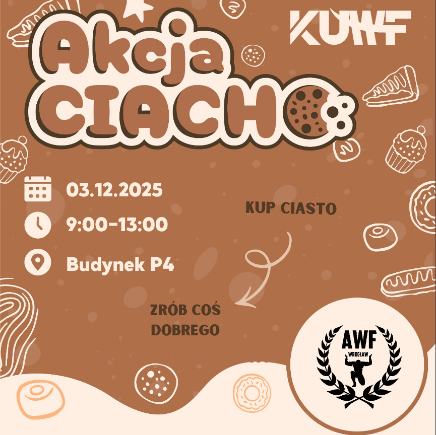 W środę 03.12 w holu budynku P4 od 9:00 będzie można wesprzeć zbiórkę charytatywną, odbierając w podziękowaniu pyszne ciacho. Cały dochód zostanie przekazany na zbiórkę Hani Barczak.